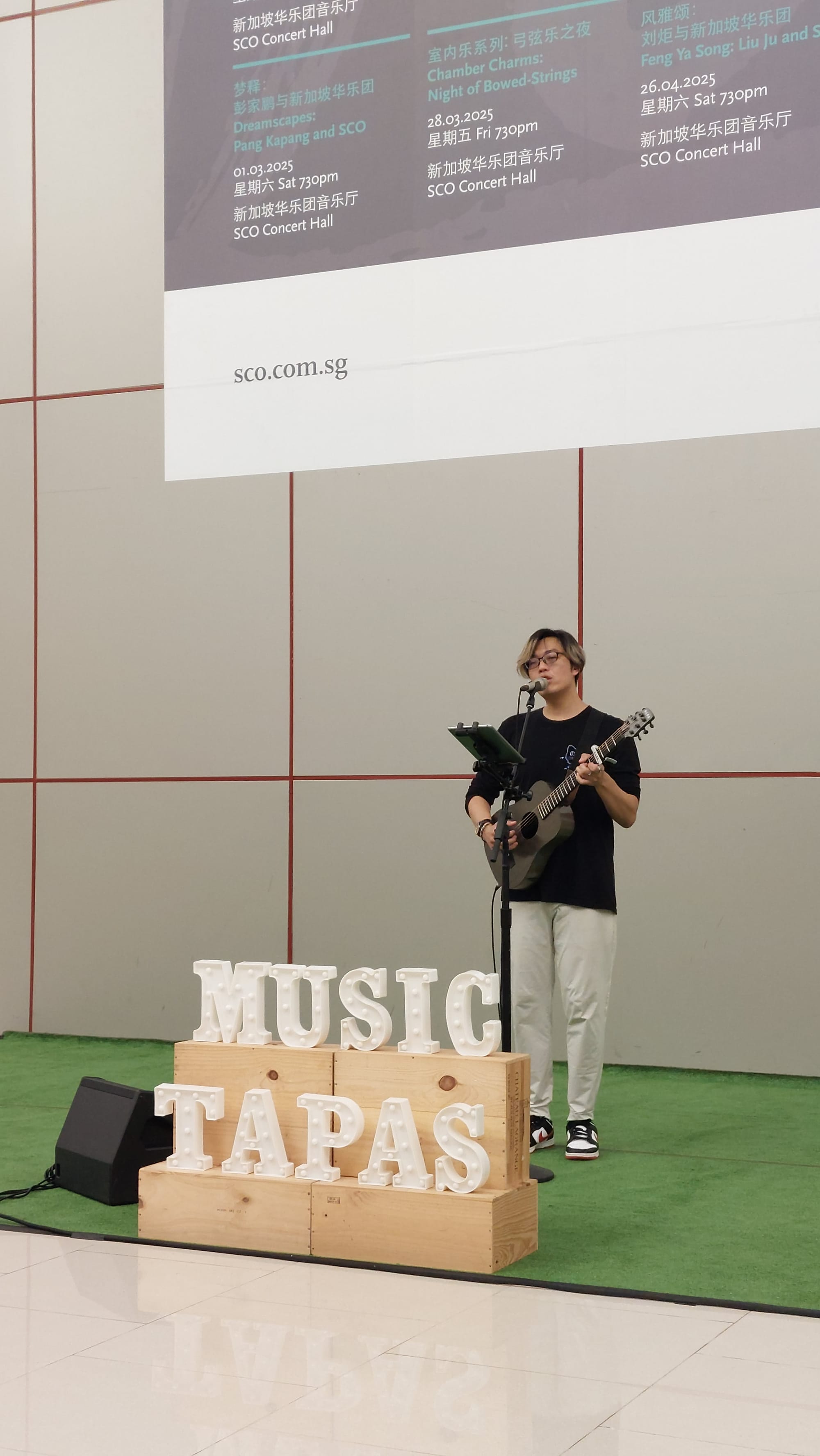 Today I'm featuring a Music Tapas event at the Singapore Chinese Orchestra (SCO). Each month there will be a Music Tapas before an SCO concert for concert-goers to listen to free pre-concert performances featuring local music artistes. Evan Goh (吴宇凡) (@evantellstories) is the performer for the month, performing before the Musical Voyage II concert conducted by SNYCO Conductor Lien Boon Hua.