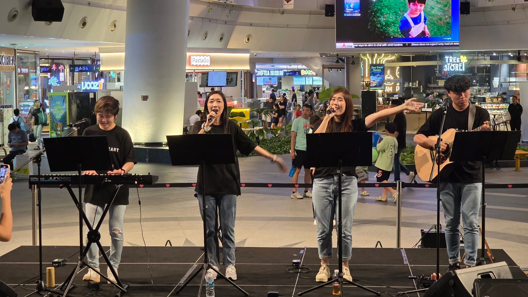 Meet Music Heart Band (乐点心) (@musicheartband), a band of eight musicians (yes, you've heard that right!) with talents ranging from keyboard, guitar and drums and powerhouse vocalists, producing, composing and writing lyrics. From busking in the streets and monthly livestreams on social media, they have also performed in community events, corporate gigs and weddings, with the band at the time taking the stage at Suntec City's Music in the City. And since March this year, the band also performed at The Star Vista's Groovin' With The Star, performing on the last Saturday of every month (Karyn & Sheng Li perform on the last Friday of every month).