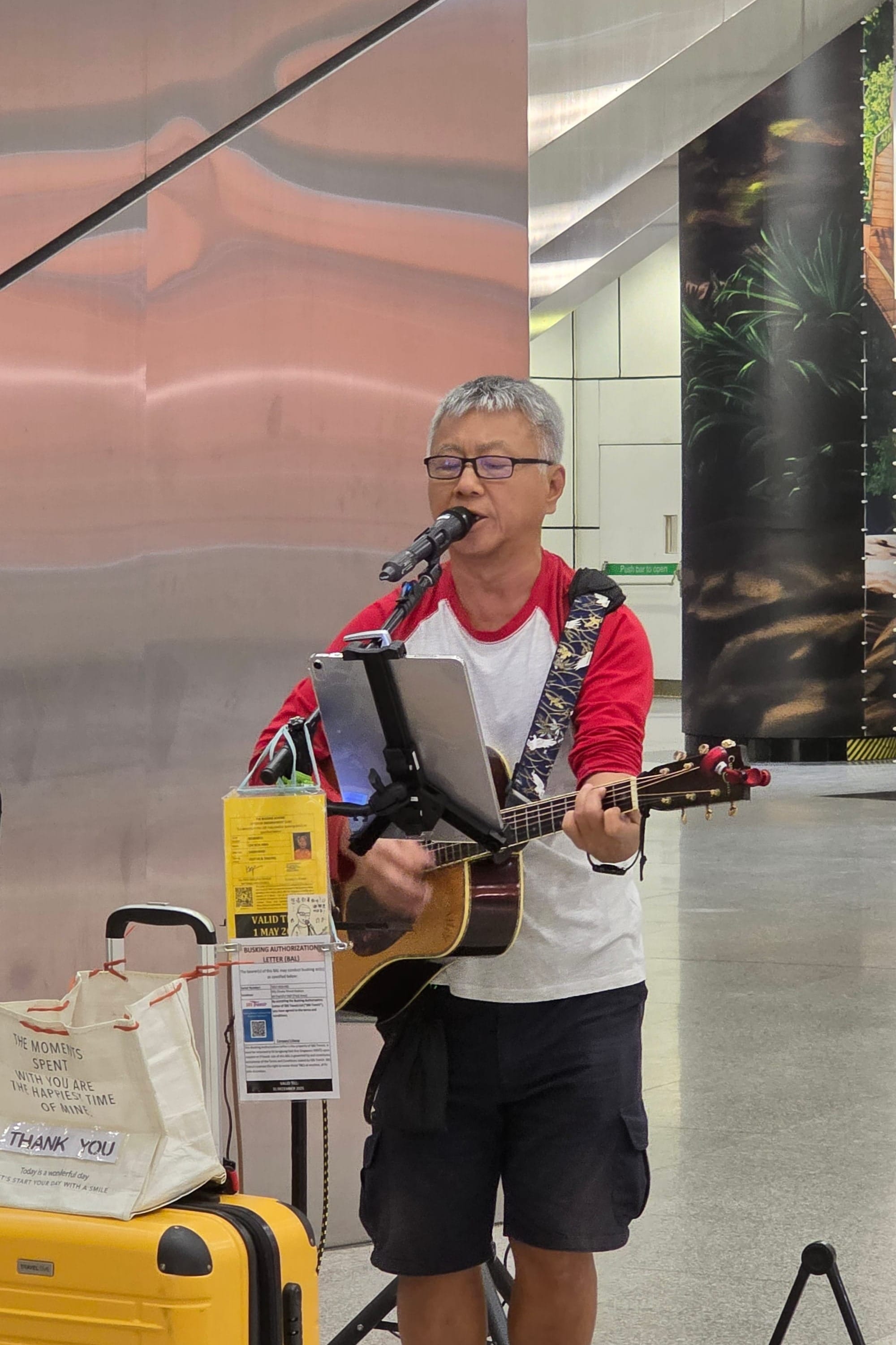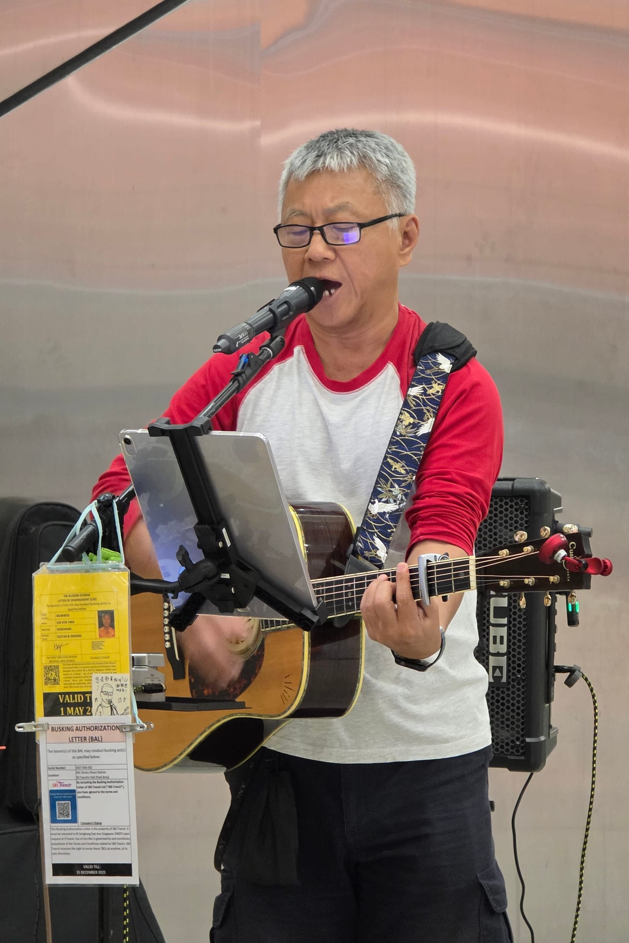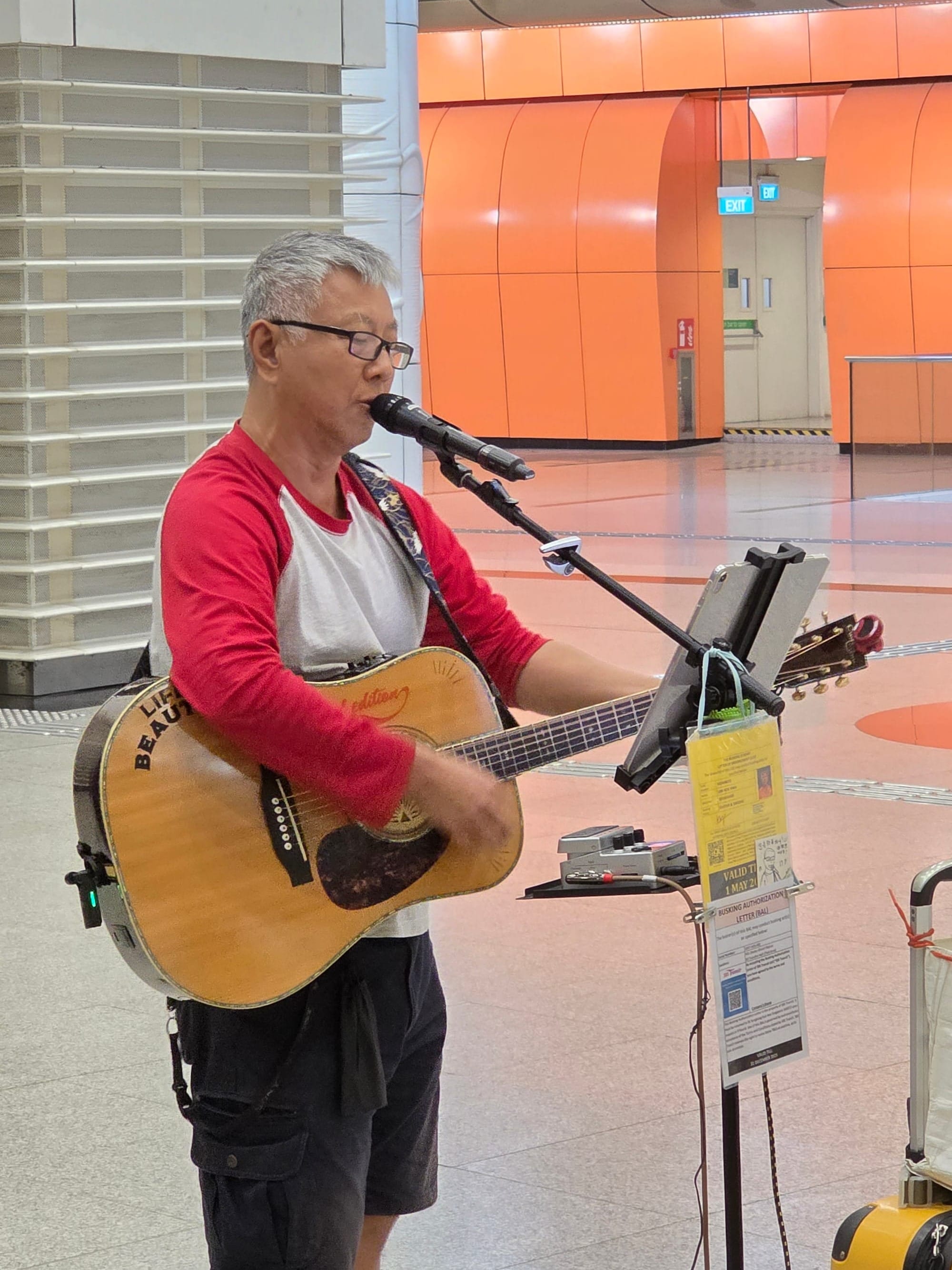 Meet Philip Lim (林国华), a retiree busker who has been busking for over three years. A former IT support staff, he started performing on stage when he was 40+ years old for a company event and began volunteering at a nursing home after he retired, where he joined a volunteer guitar group. There he met several music enthusiasts of similar age, and along with three others, formed a group called RAPO (of note, almost all the members are known to busk on the streets).