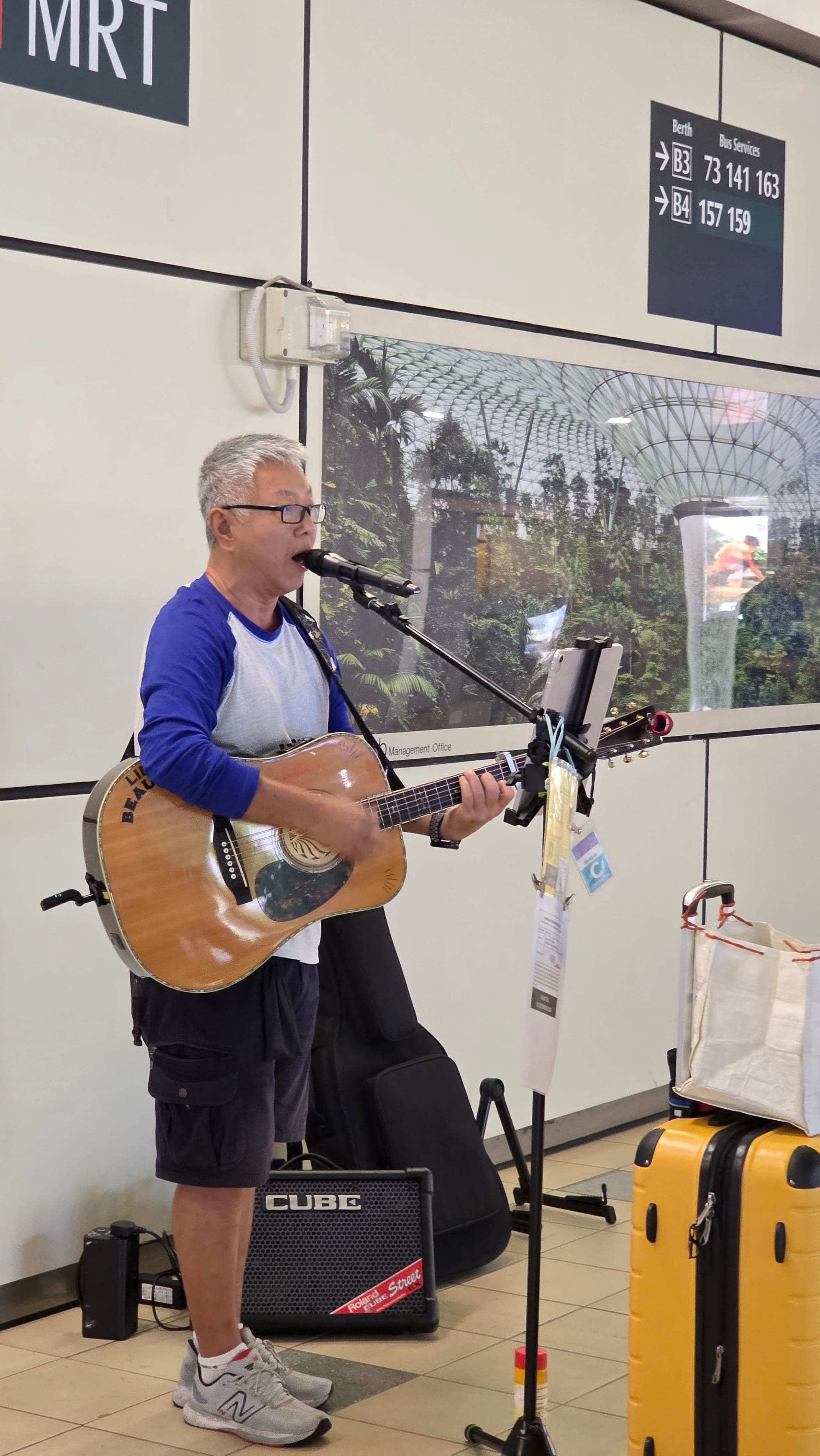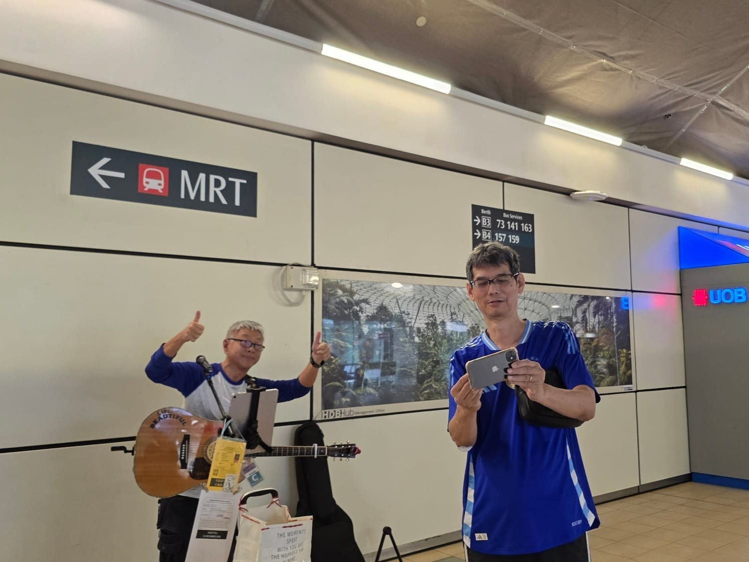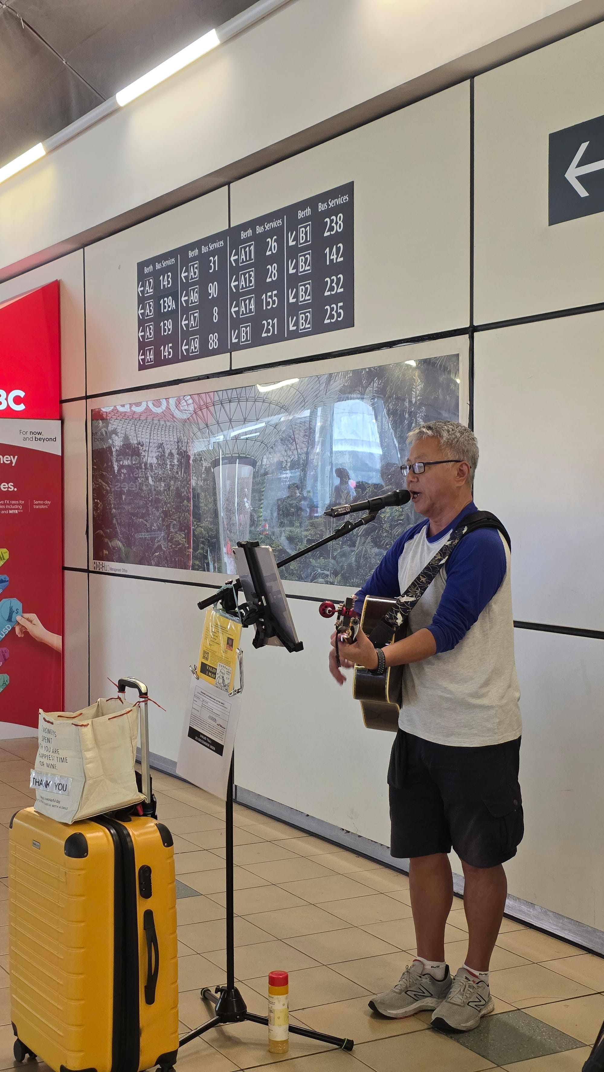 The photos/videos were taken in May 2025, before the relocation of the original busking spot. It has since moved to a spot near berth B3 (serving bus services 73, 230M, 232 & 235) from June 2025.