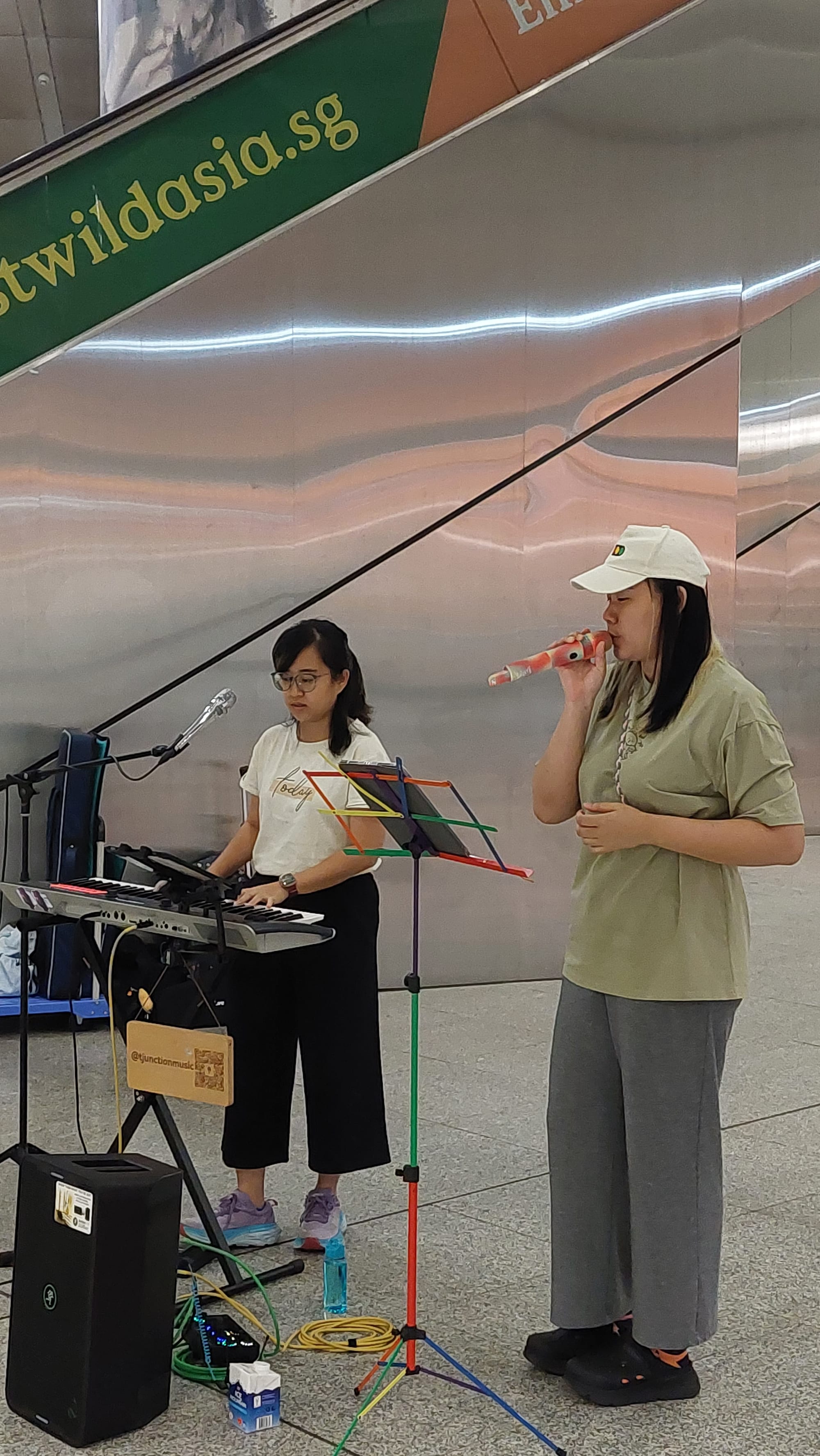 Meet T Junction (红绿灯) (@tjunctionmusic), a female duet comprising of keyboardist Alina (麦菽娟) and vocalist/beatboxer Jia Rui (林佳蕊). They first met in a mandopop group, Voices, back in university, and remained inseparable over the past 10 years, busking at different crossroads and junctions around the island. They gained recognition after a recommendation from someone to compete in Mediacorp's Battle of the Buskers (游走的歌王), in which Papaya Duck and Evan also competed in. They emerged as one of the Top 3 finalists (Evan is also in the Top 3, The ETC won).